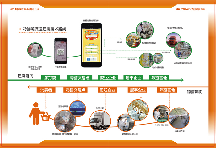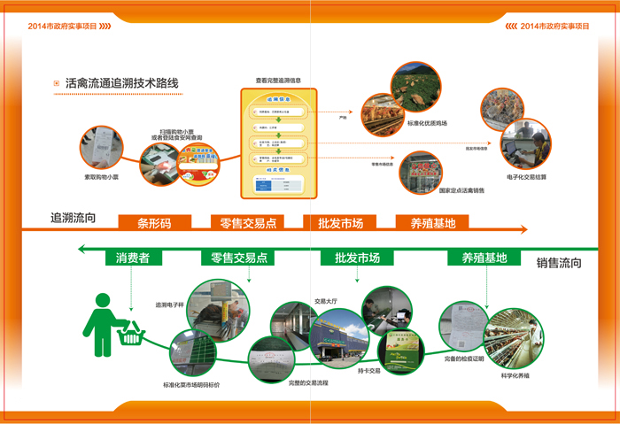 2014年,全市已在2家活禽批发市场、108家活禽零售交易点、3家冷鲜禽屠宰场、2家冷鲜禽配送中心、188家冷鲜禽零售交易点建成食品流通安全信息追溯体系,超额完成2014年市政府实事项目既定目标。