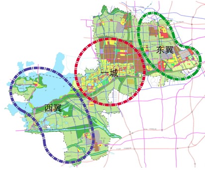 按照统筹区域协调发展的要求,青浦立足于不同区域的区位特点和基础优势,力争打造产城一体、水城融合、多元要素集聚均衡发展的现代化新城增长点,依托虹桥商务区发展商业商务和现代服务业的东翼增长点和利用天然湖泊资源发展湖区经济的西翼增长点,形成相互促进、协同发展的“一城两翼”战略布局。