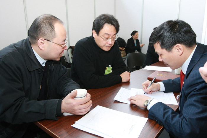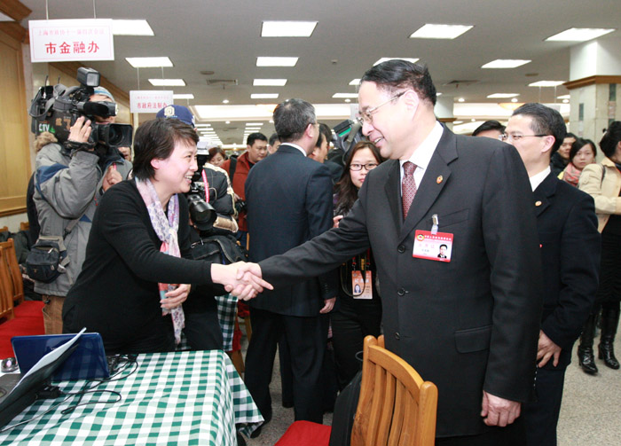 1月14日,市政协主席冯国勤同志等亲切慰问市财政局参加市政协第十一届第四次会议现场咨询的工作人员。